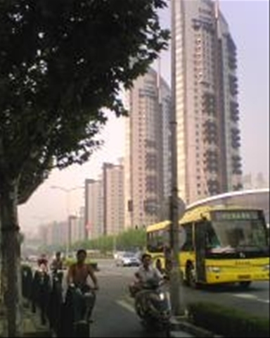 世紀公園に向かって走り出す。歩道は広く、木陰になっていてタイル状の舗装、まあ走りやすい。脇は自転車道になっていて車と自転車は分離されているが、原付も自転車と一緒に走っている。ただし、日本の原付と違い、かなり遅い。