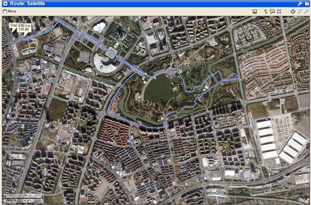 10分程度で着いた世紀公園は、明らかに人造の公園で、全体としては英国の様式。ただ、とても広く、所々にいろいろな様式が顔を出す。あちこちで、太極拳のグループが朝の体操?をやっている。後は後ろ向きに歩く人を何人も見た。親子連れの散歩や、老夫婦など、いろいろな人たちと出会ったが、日本で良く出会うような、犬をつれた人たちはいなかった。走っているうちに公園の端っこまで来たようだ。