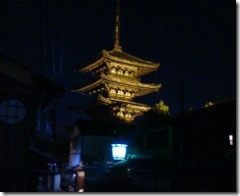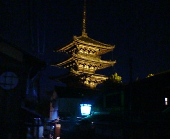祇園、五重塔、八坂神社という感じのルートをその学生さんと話ながら集団最後尾でついていく。結局その学生さんともう一杯だけ一緒して、若いエネルギーを沢山もらい、中年オヤジの生き方を11時過ぎの閉店時刻まで真剣にお話した。自己啓発とか、コーチングといった内容の話を、学生向けにアレンジしただけであるが。(自己啓発の本とかは立ち読みだし、コーチングの本も図書館で借りただけであるから超、低次元である。)それでも、真剣に相談し耳を傾けてくれる、23歳の若いお友達が一人できた。