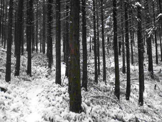 森の中は思ったより暖かく、直ぐに汗ばむ。が、脱ぐためには、雪にぬれなければならず、脇の下のジッパーを開けてしのぐ。