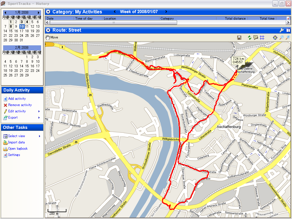 途中からは用心して、交差点内は歩いた。対向して自転車がやってきた。坂を横切るように、交差点に突っ込んできて、おいおい、と思ったら、案の定目の前でスッテンコロリン。念のため声を掛け、ついでに道を聞いて走り出すが、もう怖くて抜き足差し足忍び足。しばらくして平地に戻ったと思ったら、先ほどの川沿いの道だった。ここは全く凍っていない。丁度境目だったのだろう。市街地を走り抜けて46分、7.2キロ平均144拍。