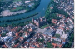 先日真っ暗で進めなかったマイン川沿いの道を目指す。が、一本間違えて曲がってしまい、そのまま町外れまで走って、戻る。要塞風な古城があるだけあって、川へは急激な下りになっている。