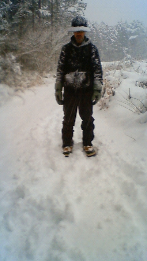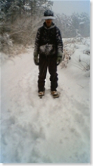 午後1時、雪の降る中をスーパー源根登山開始。小2がお供。