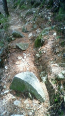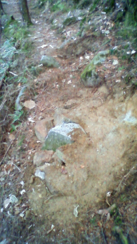 自走で帰宅後、Mr王滝とスーパー源根の整備に。 レースの反省をしながら、軽トラでスーパー源根入り口まで。林道はあれていて、揺れ揺れ。 氏は10kgはあろう長いバールを、私はお借りしたスコップを担いでトレイルを登る。トレイルを2時間ほど整備して、本日の作業終了。