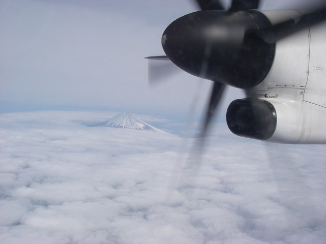 ちなみに、ナリタからセントレアは、プロペラ機。 全部で20人位だろうか。キャビンアテンダントのお姉さまもフレンドリーで、右手に見えますのが、富士山でございマース、的に案内してくれる。