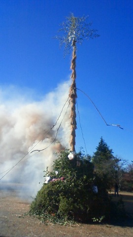 到着は、どんと焼きに着火する直前。赤○さんの司会、保勝会会長の着火で「神事」が進む。役100人と、温かいせいか、大勢の人出。みんな早くも持ちを竹に刺して、焼く準備。とりあえず、確保して、根ノ上湖を赤○解説員と一緒に散歩。たくさん説明を聞いたが、メモを取らなかったので、殆ど思い出せない。再度現場を歩けば思い出すだろうか。帰っておでんとお餅、豚汁などをおいしく頂いて、1時に撤収。DADDYによる。気になっていた、加圧トレの話をたな○さんから伺う。料金効果ともわかった。自転車通勤の途中に店舗があるので、寄るのは難しくないのだが、5千円近い料金と、その苦しさが問題か。普通に筋トレするほうが先かも。