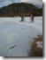 ピークまではAKOさんも一緒。記念写真をとって、下り始める。しかし、凍結。ムリは禁物。しかし、コルからは家内がガンガンに飛ばす。樹根で初めての乗車。見事に成功。これで、下りは全区間乗車出来ることになる。樹根ではもう一度登って2回目のトライ。今度は少しスピードをつけて、ジャンプ気味に。飛びすぎて、危うくコースアウトするところだったが、意外といけそうである。その後もジェットコースター区間でジャンプ。今度は本当にコースアウトして、足つき。転倒は何とか免れたが、バイクが半分崖から落ちている。アブネー。コースにあわせてジャンプしないと、着地してから急には方向を変えられないようである。地面を走る慣性と空中の慣性は異なるのか?たぶん着地前にハンドルを切っているのか?今後の課題である。