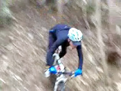 本日のメインイベント、新ルート。Mr.王滝が開拓したショートカットの激坂。前回はどう見ても降りれないと、断念した。最後の部分は100%を確実に超えている。つまり、45度は軽く超えて、90度が近い。
