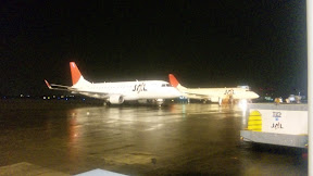 博多駅でおいしいお刺身を戴いて、早めに空港へ移動し、ラウンジで英語版作成。。。しているうちに寝てしまった。 飛行機は相変わらず揺れたが、無事に小牧に着陸。と同時に、土砂降りの雨。さっきまで降ってなかったのに。空港はまるで池。ココを歩くのか?ゴア張りの靴で良かった。。。