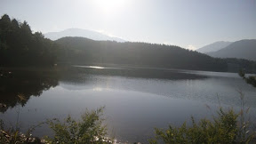 逆光に湖面が輝いている。少し湿った空気が冷たくて気持ちいい。このまましばらくくつろぎたいが、この後は仕事。そうもいっていられない。せっかくだから、トレイルで降りる?いや、ムリは禁物。